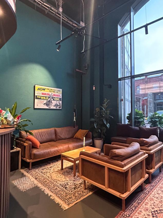 Kyseessä on yksityinen elokuvateatteri, johon halusimme luoda ainutlaatuisen ja tunnelmallisen tilan. Teollinen tunnelma saavutettiin käyttämällä tummia sävyjä, lämmintä valaistusta ja paljastamalla vanhat teräspilari- ja palkkirakenteet. Mittatilaustyönä teetetty valaistu cinema-markiisi baaritiskin yläpuolella on kunnianosoitus vanhoille elokuvateattereille. Tavoitteena oli luoda ajaton tila, joka tuntuu siltä kuin elokuvateatteri olisi aina ollut siellä. Tila elokuvien ystäville nauttia elokuvista mukavilla sohvilla huippuluokan kuvan- ja äänentoiston kera, ja baari, joka kutsuu viettämään aikaa sekä ennen elokuvaa että sen jälkeen.